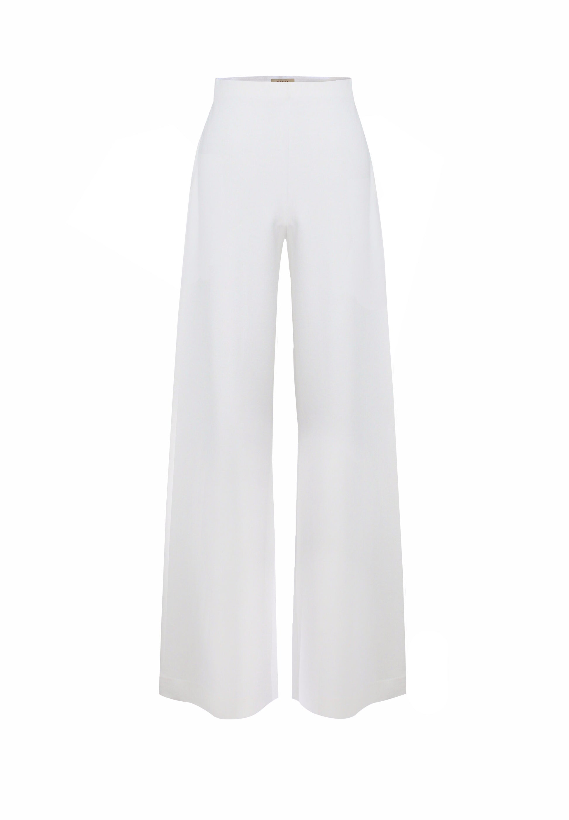 Calça com corte clássico wide leg em malha viscose. Fecho lateral e ajuste na cintura com elástico para maior conforto.