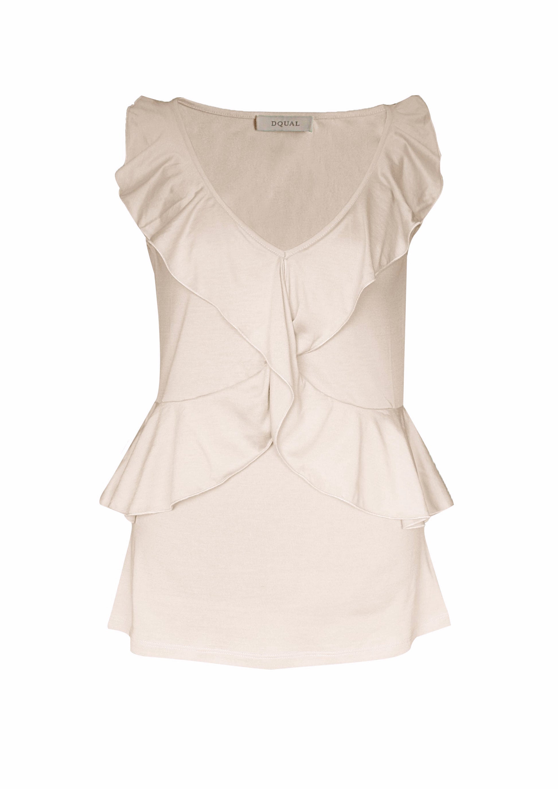 Top em Seda / Algodão com decote em V e folho trespassado na frente. Costa simples.
