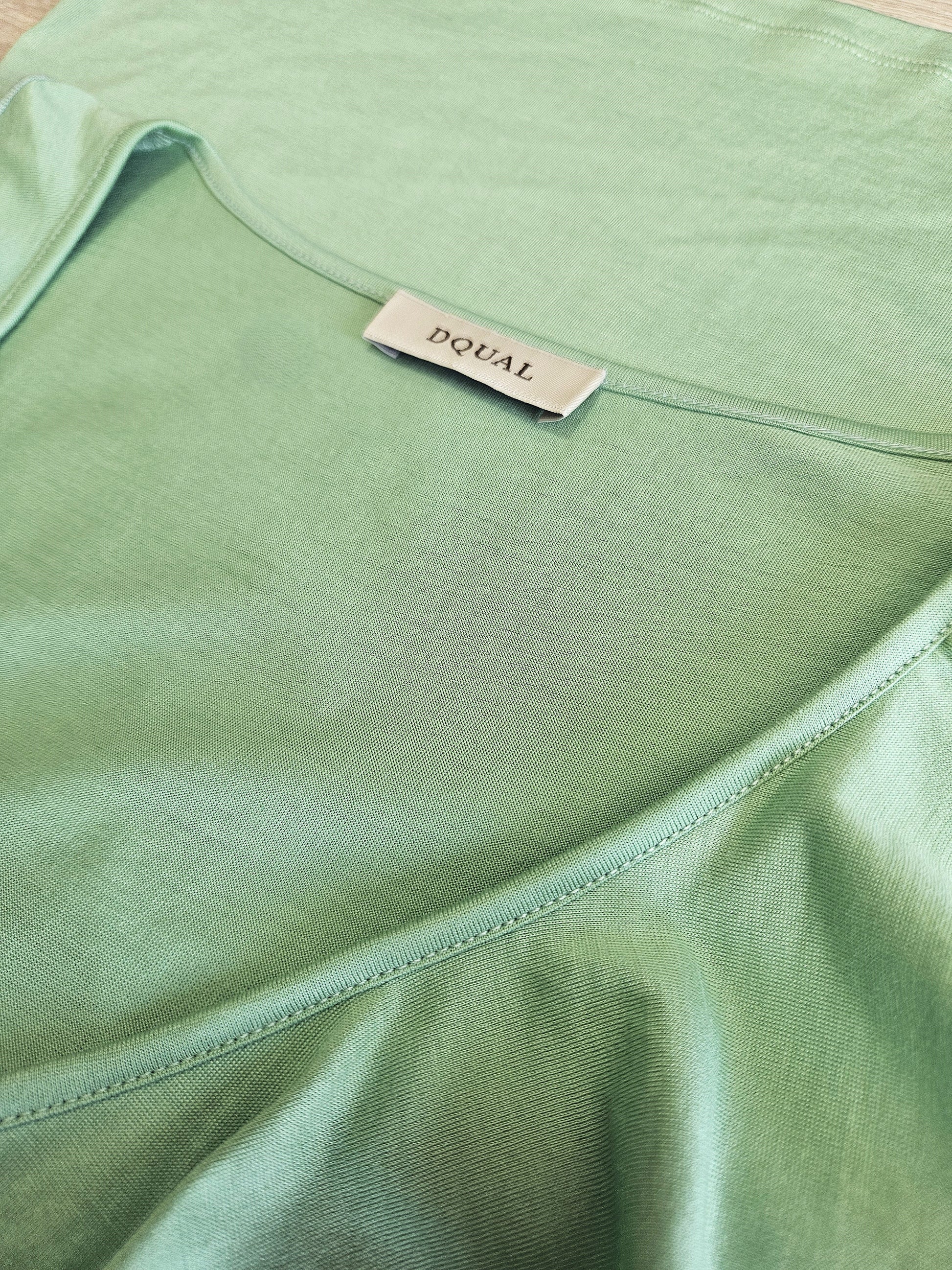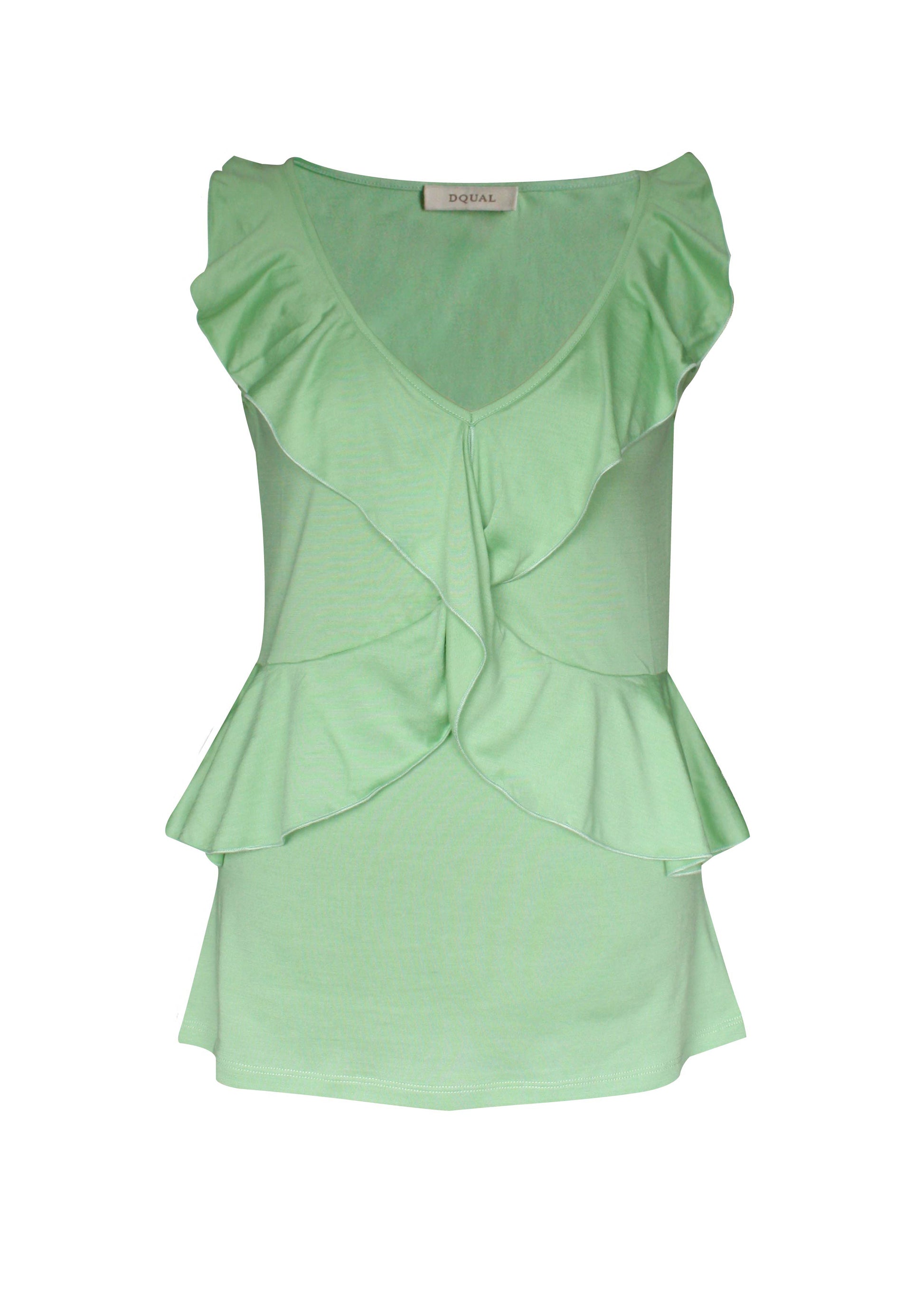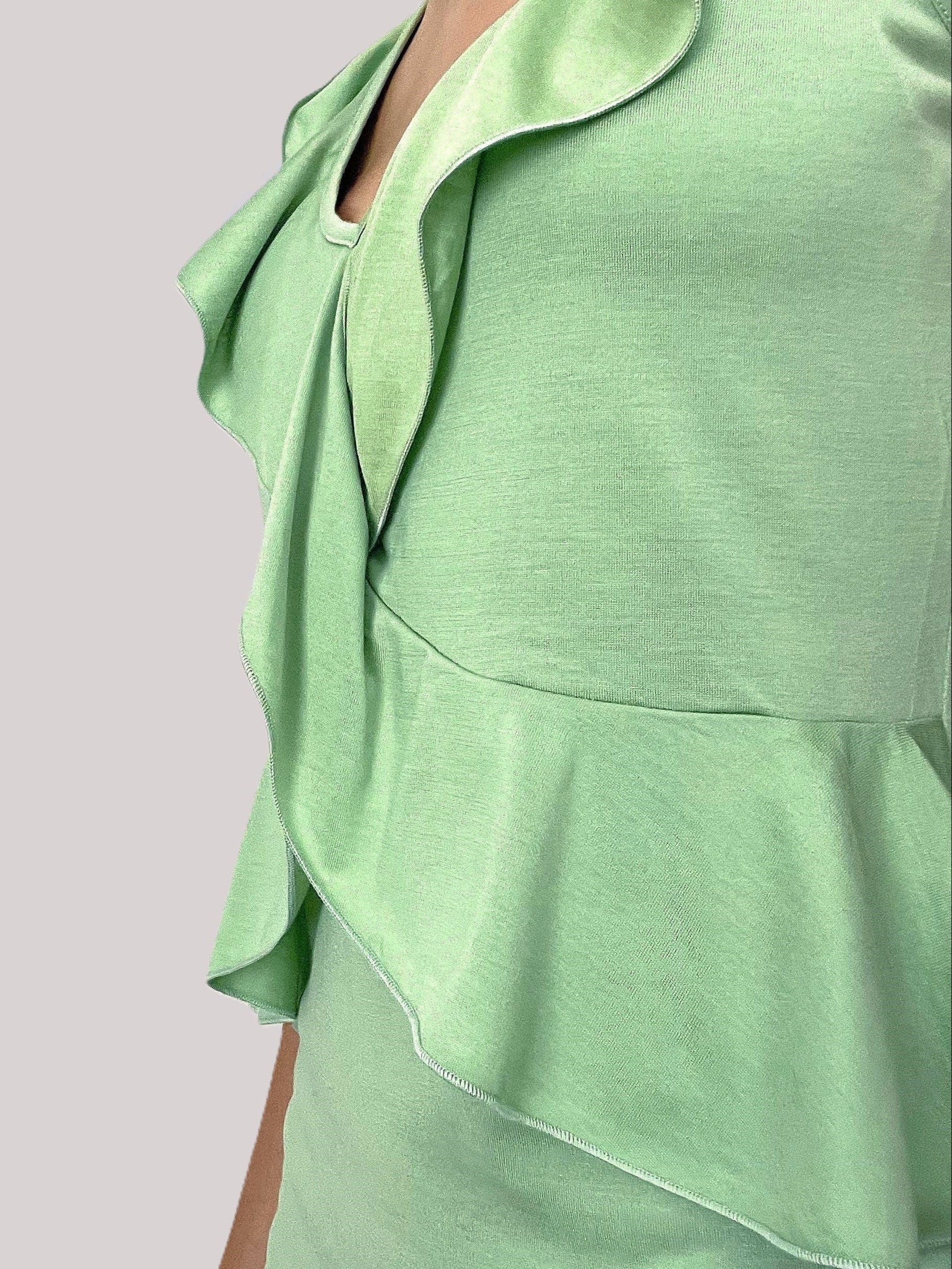 Top em Seda / Algodão com decote em V e folho trespassado na frente. Costa simples.