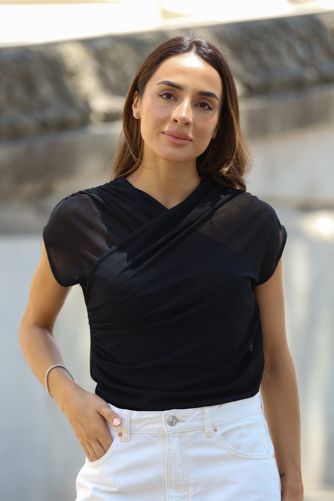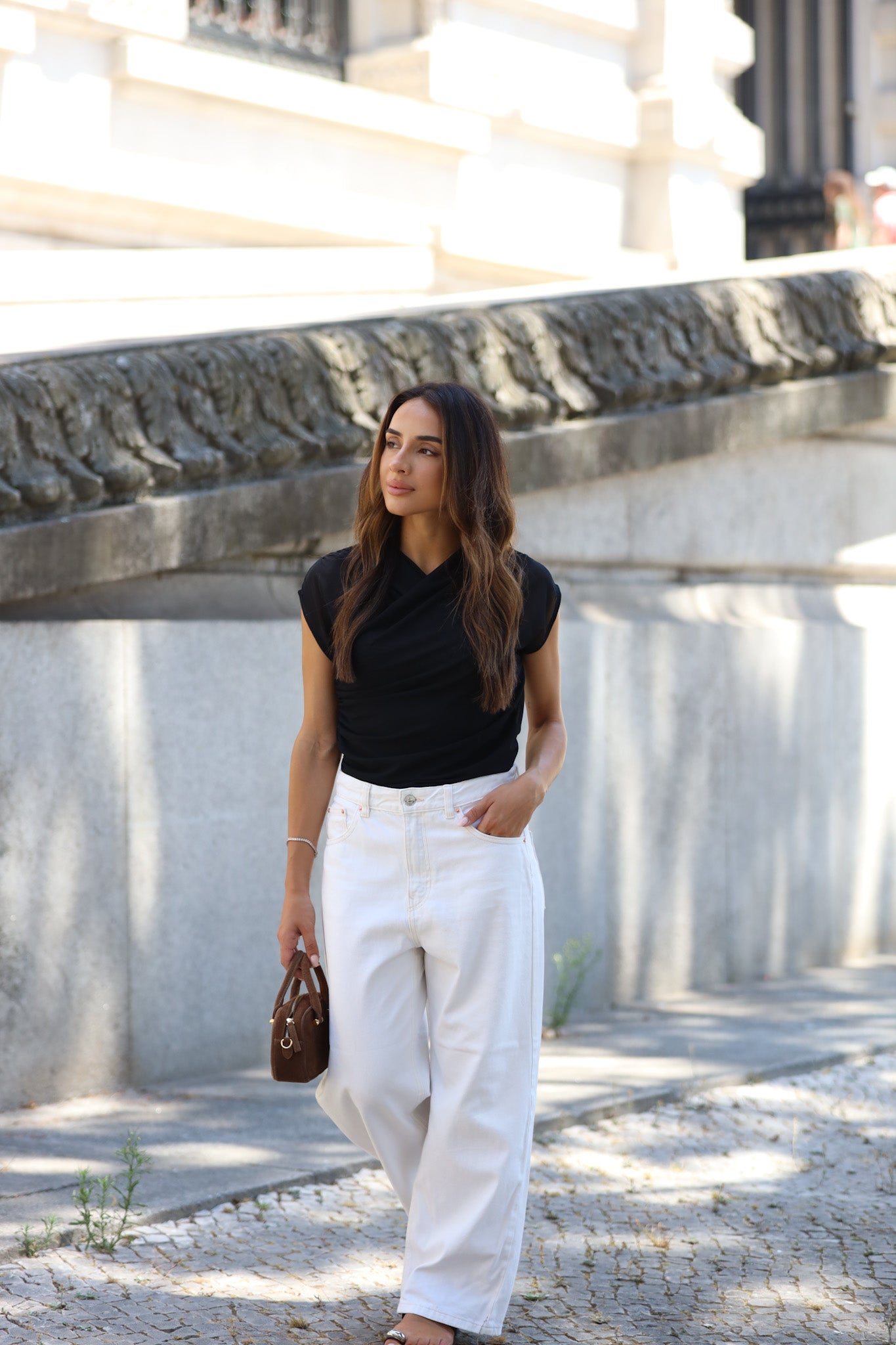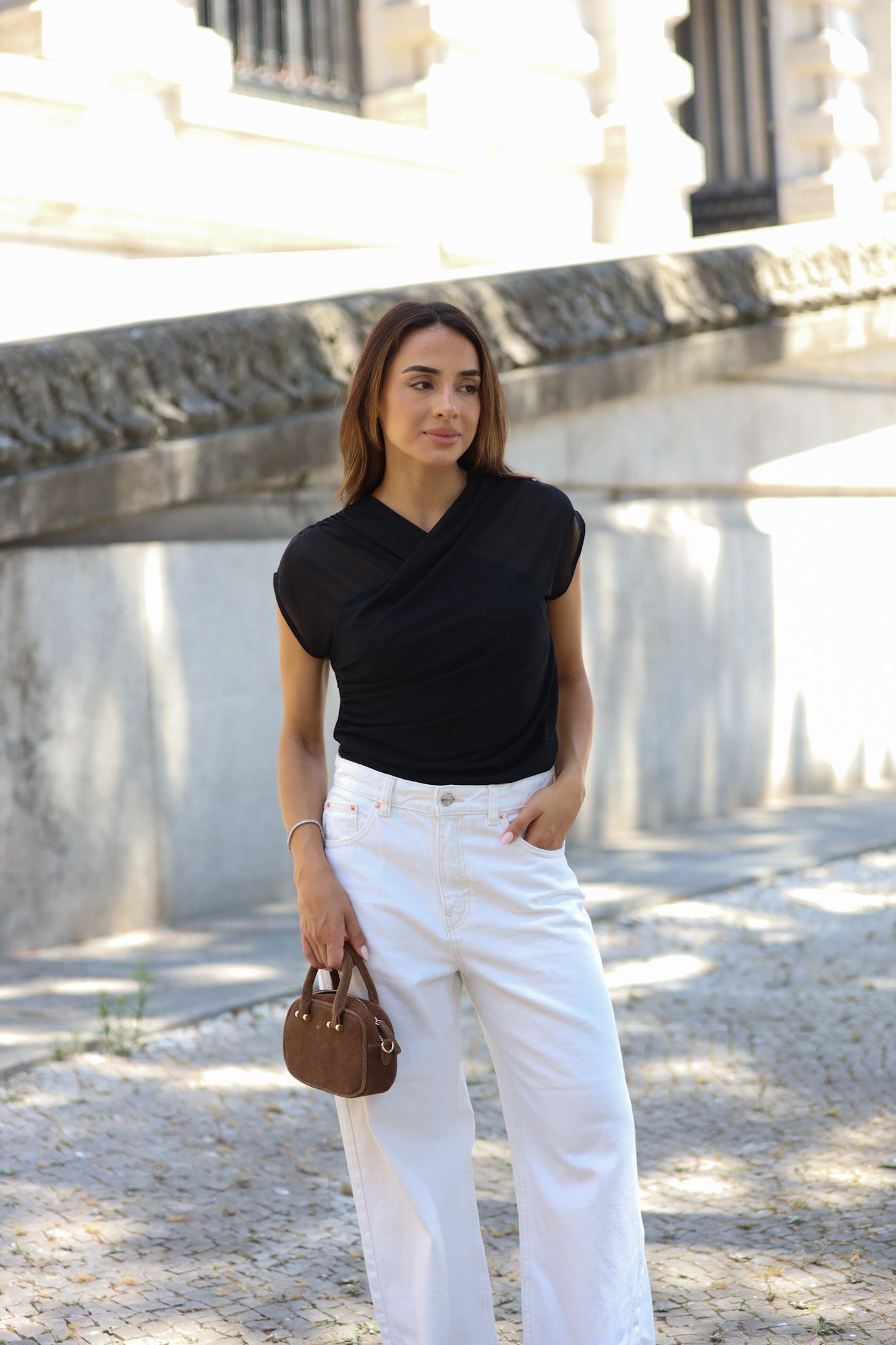 A modelo mede 1,60m e veste o tamanho S. Recomendamos que compre o seu tamanho habitual.